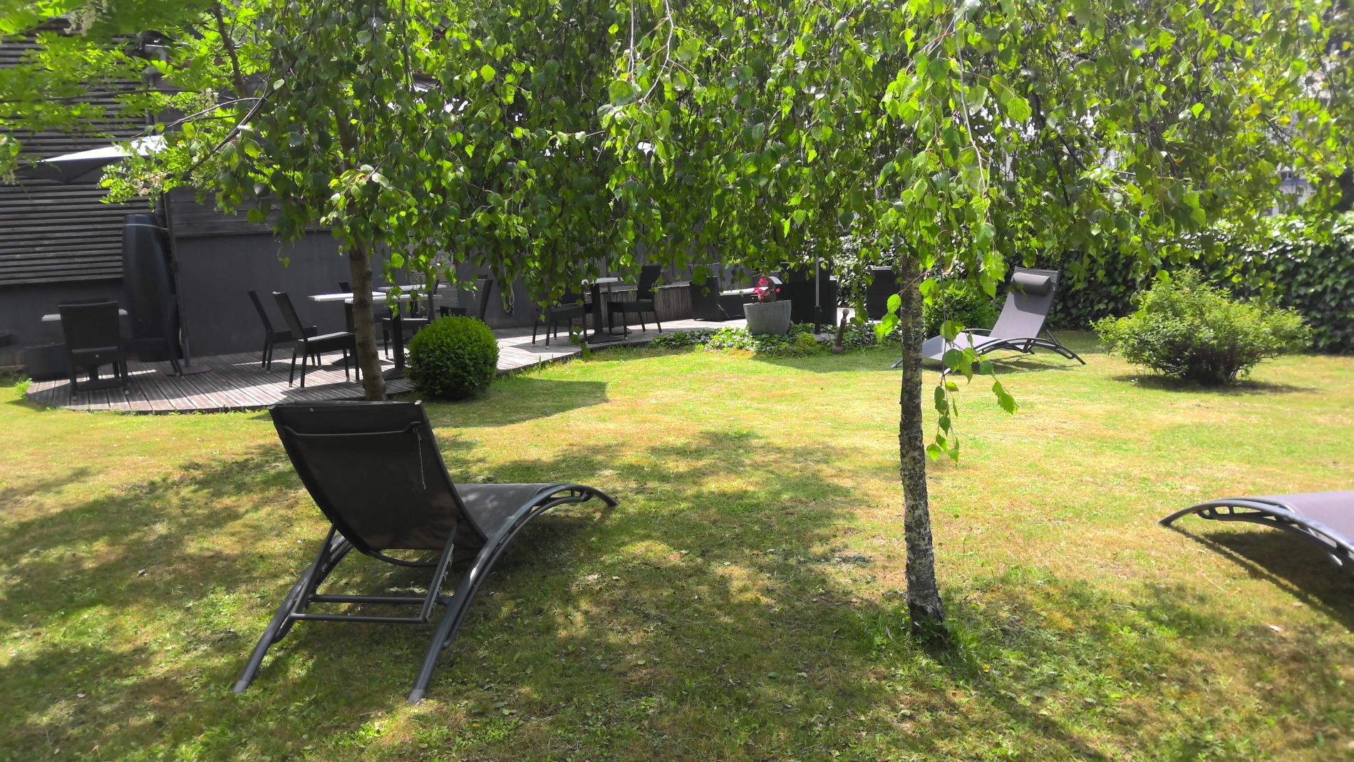 Voilà l’invitation qui vous est faite dès les beaux jours. Le jardin de l’hôtel, c’est aussi un bel endroit pour se détendre dans un transat, découvrir le carré d’herbes aromatiques ou chiper quelques mures, framboises ou groseilles !
