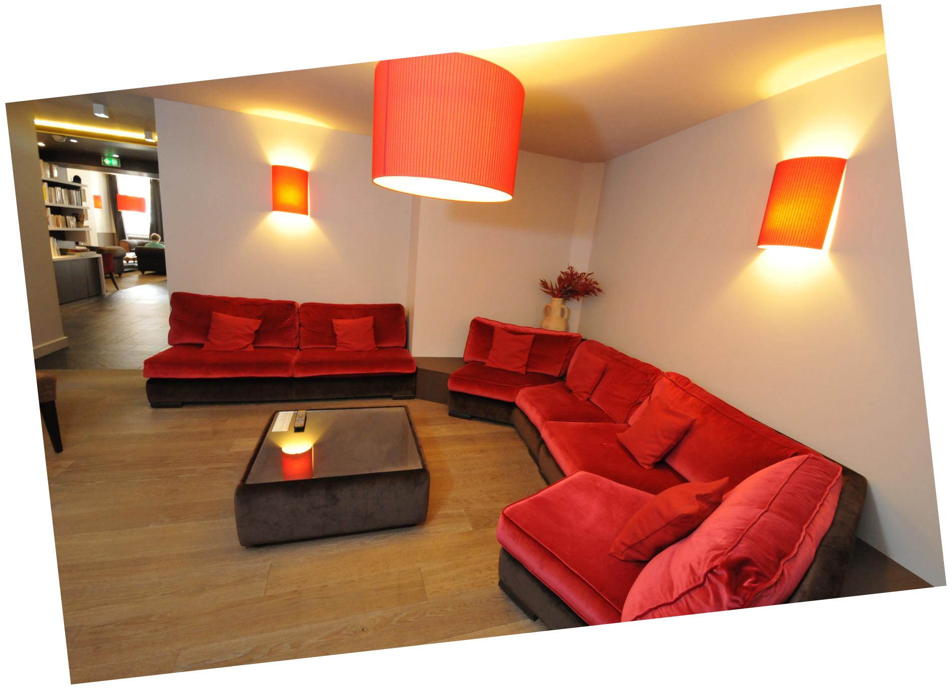 Et puis, il y a le grand salon, plus intime, plus en retrait, idéal pour lire les magazines ou les livres mis à votre disposition par le Central***, ou pour se connecter au monde entier dans l’espace Business corner.
